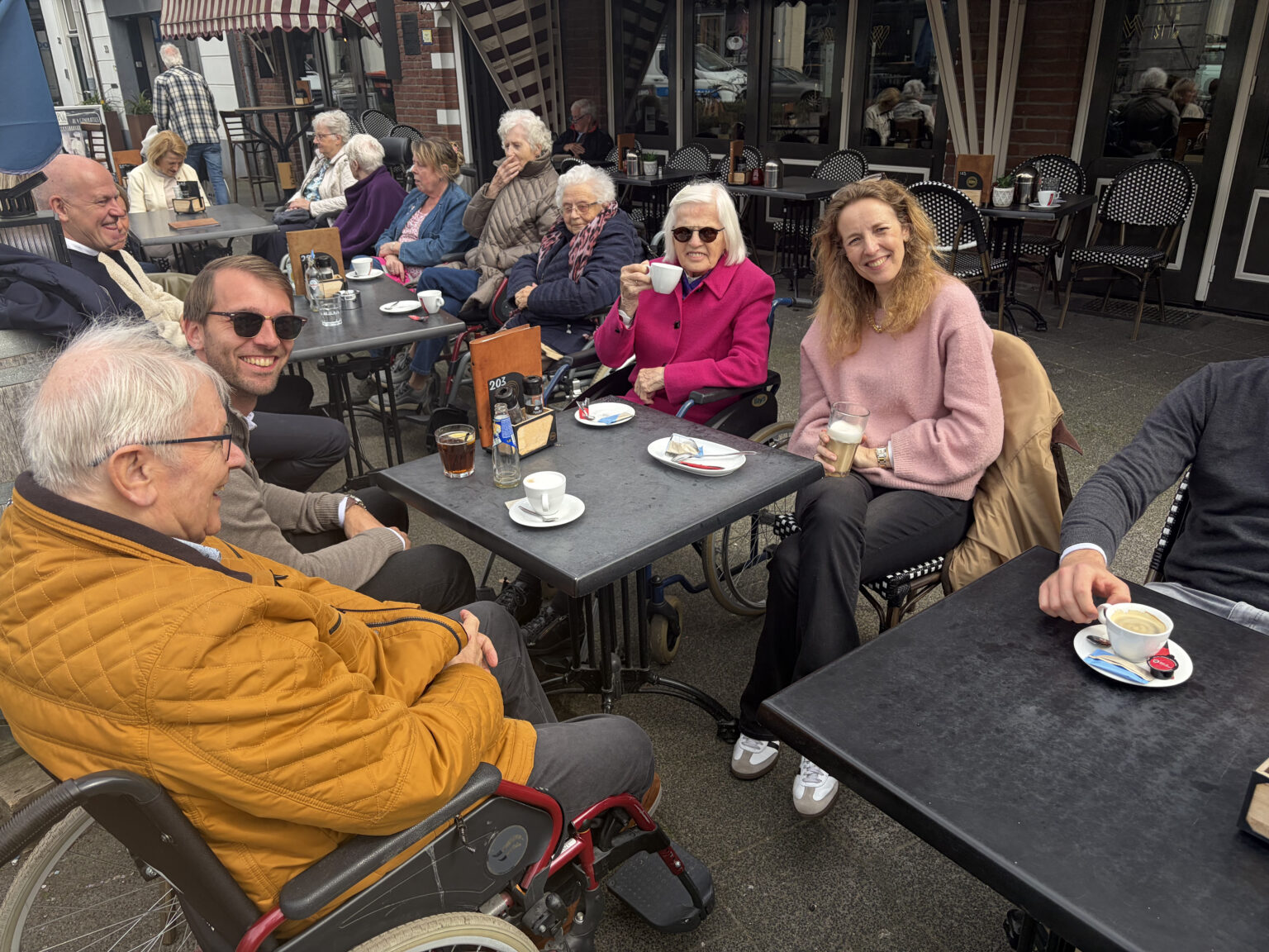Onder een stralende zon genoten de bewoners van Thebe de Heuvel van een heerlijke wandeling richting de Haagse Markt in Princenhage, een uitje waarbij de kracht van eenvoud centraal stond. Bij Het Roode Hert werd de wandeling bekroond met koffie, borrelplanken en vooral heel veel goede gesprekken, wat zorgde voor een golf van herkenning en energie bij de deelnemers. Sylvia (Thebe de Heuvel) zag bewoners letterlijk opbloeien: “Het is prachtig om te zien hoe iemand die normaal veel slaapt nu honderduit praat over vroeger; aan zo’n middag hebben ze genoeg.” Ook Irene van de Kerkhof (Koch Advocaten) genoot van de waardevolle verhalen over Breda en de bijzondere band met Princenhage. Voor de bewoners zelf betekende het uitje meer dan alleen een frisse neus, zoals één van hen treffend omschreef: “Ik heb weer het gevoel dat ik leef en onderdeel ben van de maatschappij; nu heb ik weer een nieuw verhaal te vertellen als er bezoek komt.”
